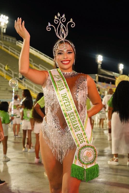 “Fui recebida com um carinho imenso por todos da escola. Dhiego tem me orientado em tudo e todas as musas me acolheram de forma maravilhosa. Quero que este seja o primeiro de muitos anos no Império Serrano”, diz a musa que vai desfilar à frente da última alegoria da agremiação.
