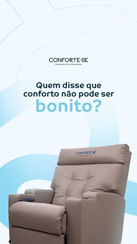 As poltronas da Conforte-se foram pensadas para proporcionar conforto e estabilidade, sendo indicadas para cirurgias como abdominoplastia, lipoaspiração, cesárea e implante capilar. O apoio ergonômico contribui para reduzir tensões musculares e preservar a área operada.